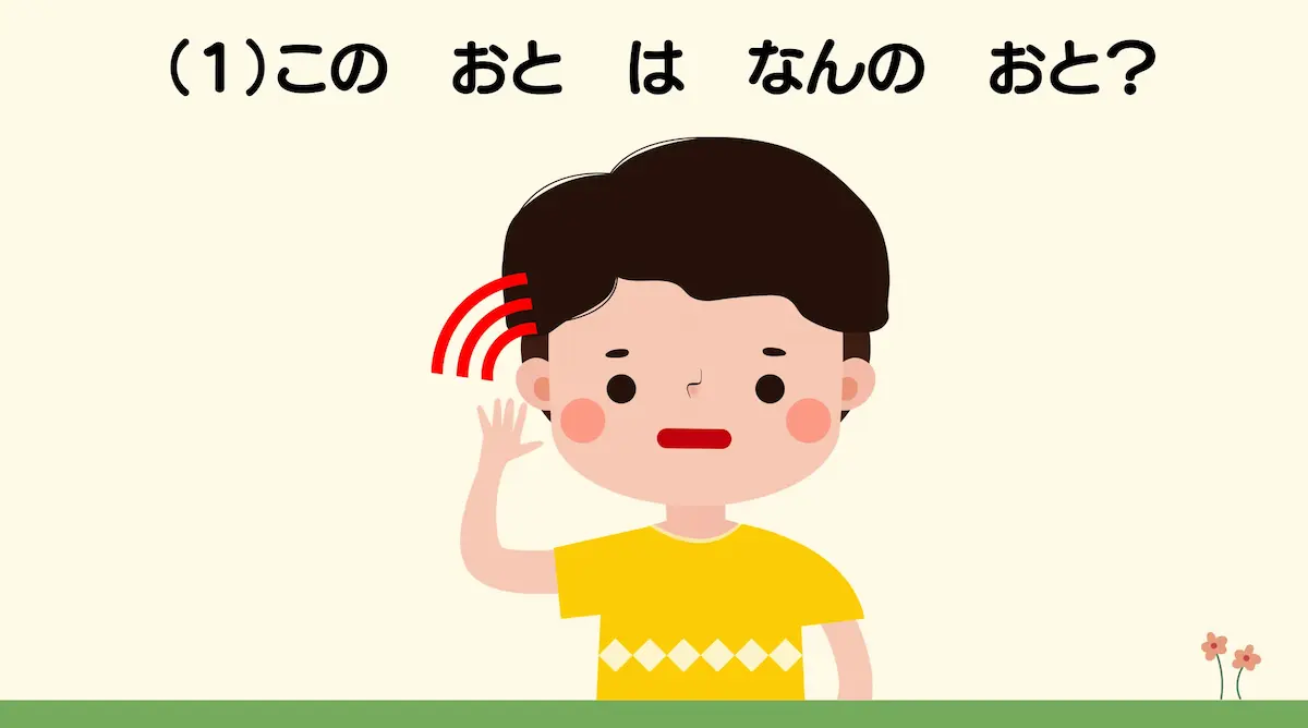 安全行動に続いては、様々な災害発生の状況を知らせる「音」の防災クイズを行いました。