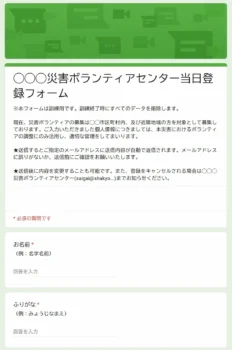 〇 災害ボランティアセンター当日登録フォームサンプル|Googleフォーム